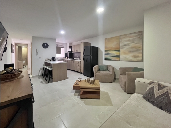 Apartamento interno con excelentes acabados, a media cuadra del parque principal de Sabaneta, de facil acceso de transporte publico. 51 m2, una alcoba con baño y closet, baño social, salón comedor cocina abierta. Edificio sin portería y con ascensor. No cuenta con parqueadero. Precio Amoblado ($345.000.000)